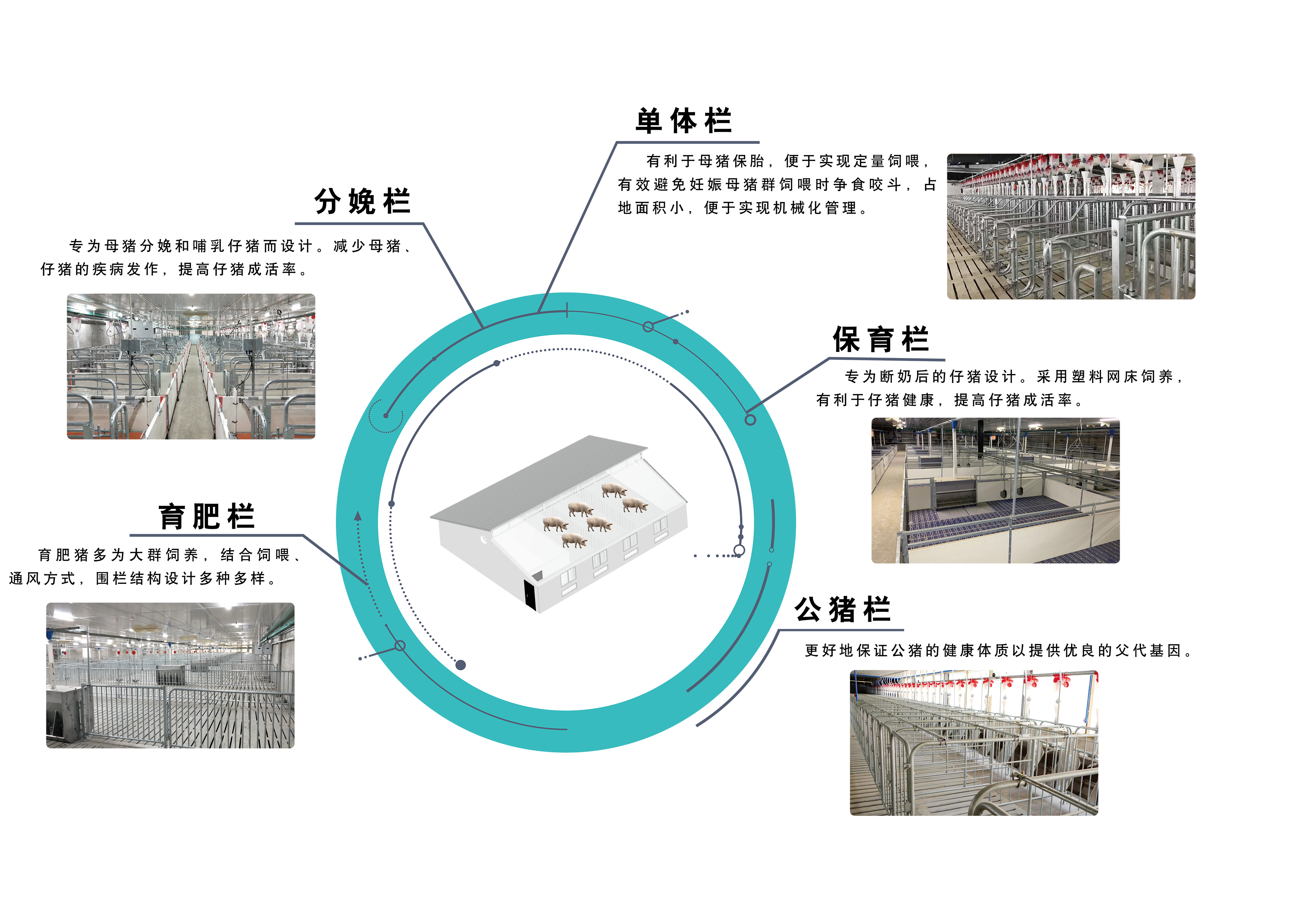 根據(jù)規(guī)?;B(yǎng)豬場(chǎng)的生產(chǎn)流程、豬的生理特征及習(xí)性,我們?yōu)椴煌A段的豬只量身打造了...